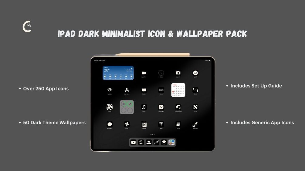 iPad Dark Minimalist Icon & Wallpaper Pack